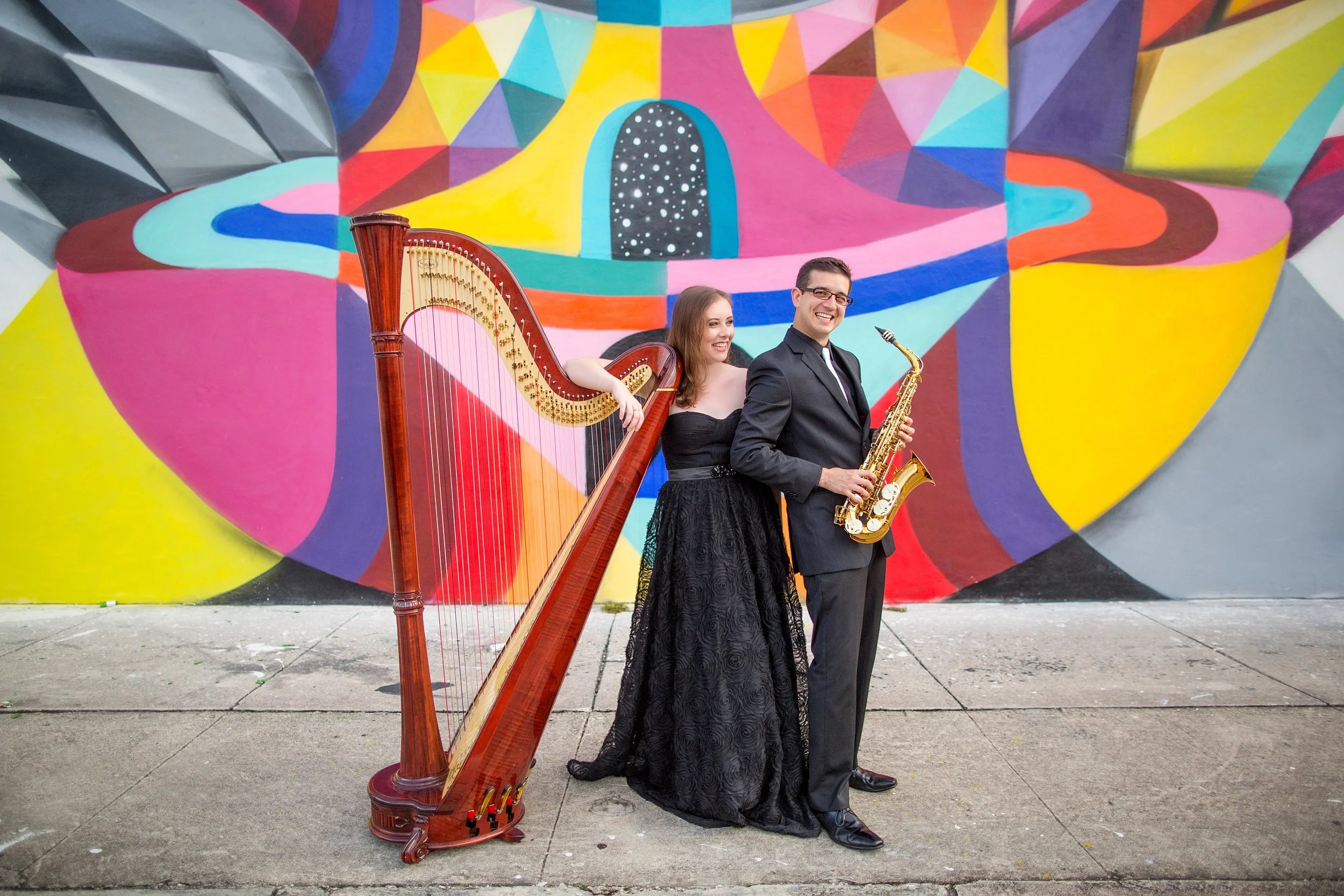 Dr. Kristina Finch and Dr. Dannel Espinoza are a husband-and-wife team of professional musicians committed to building strong, supportive musical communities. Kristina is a harpist whose work spans performance and teaching, helping players of all ages feel confident, creative, and connected to their instrument. Dannel is a saxophonist and chamber musician with a long history of collaborative projects, outreach, and arts-focused entrepreneurship.